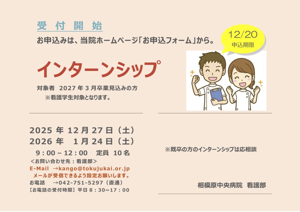 お申し込み後10日以内に連絡が無い場合は、お手数ですが看護部(042-751-5297)までお電話ください。